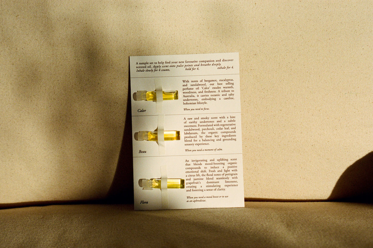 Explore the trio of our 100% natural oil-based fragrances. Depending on your body's chemistry, the scent will uniquely evolve on your skin making it a truly personal experience. Use the set to find your favourite scent and reconnect to your senses.